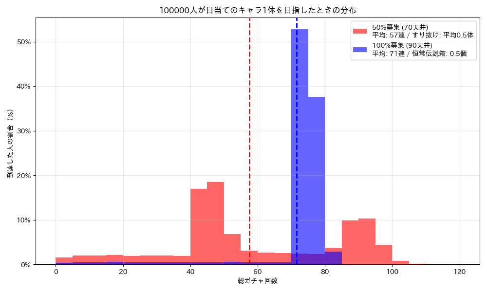 - 赤色の山: 50%募集(70連天井)