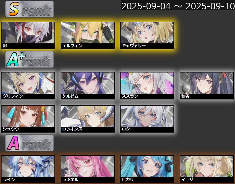 先週に引き続き、影はいまだ好調。BAN率1位/勝率もそこそこ。